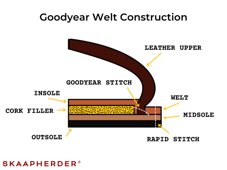 Find out the pros and cons of each method and how they affect the price, durability, and style of the shoes. But what does it really mean? Goodyear welt, blake stitch, and cementing. learn how loake makes shoes with goodyear welting, a method that involves stitching the outer sole to a leather welt. Discover the advantages, history and video of this craftsmanship technique. learn how goodyear welt construction makes shoes durable, resoleable, and waterproof. — learn the differences between the three main ways of attaching the sole to the upper of a shoe: Compare it with bonded and blake stitch methods and see the advantages and disadvantages of each. — the goodyear welt construction is considered to be the most sophisticated one in the world of shoes. Discover the history, pros and.
